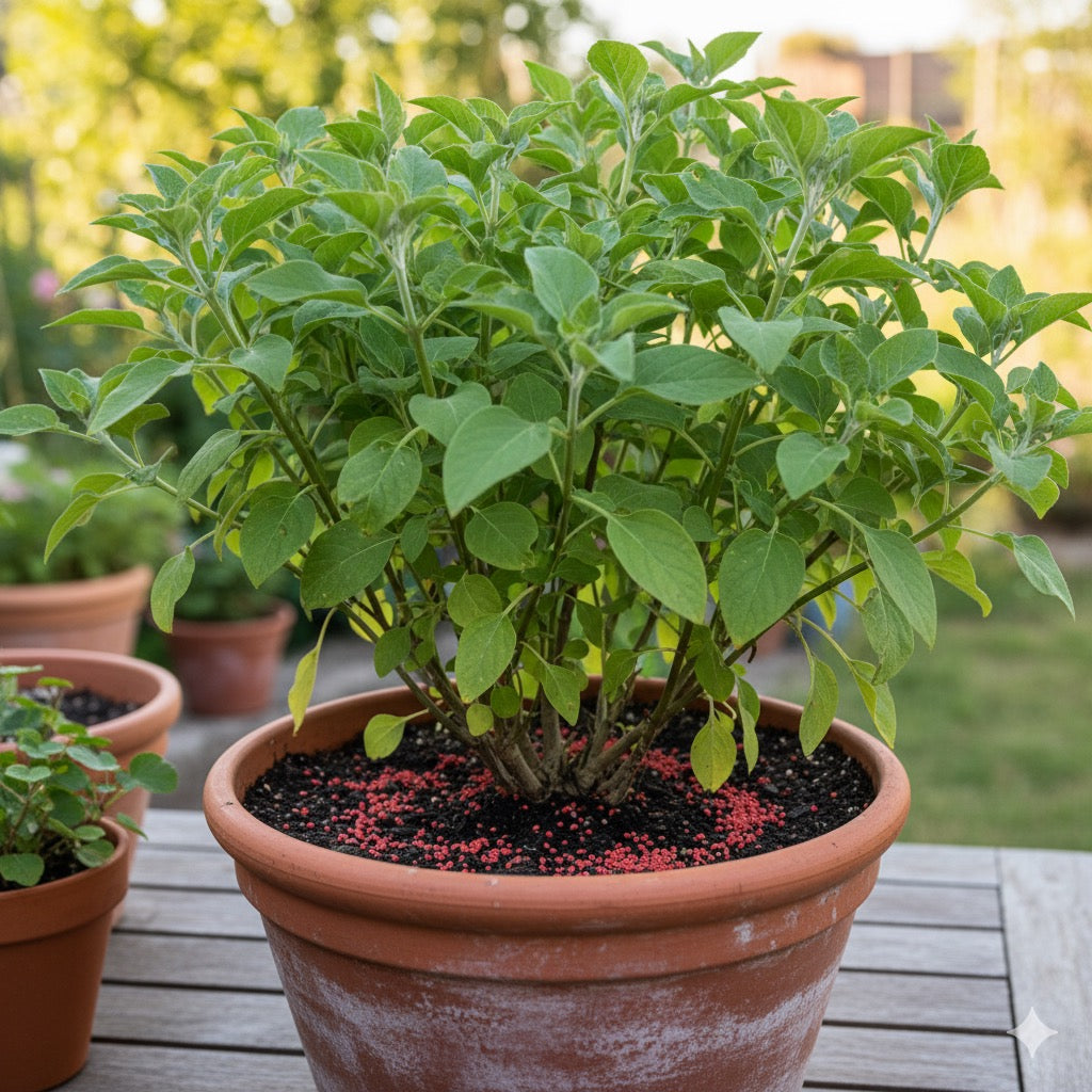 Distribuire uniformemente sul terreno alla dose indicativa di 30–50 g/m² (o 1–2 cucchiai per vaso di medie dimensioni). Incorporare leggermente al terreno e annaffiare. Ripetere ogni 4–6 settimane durante il periodo vegetativo.